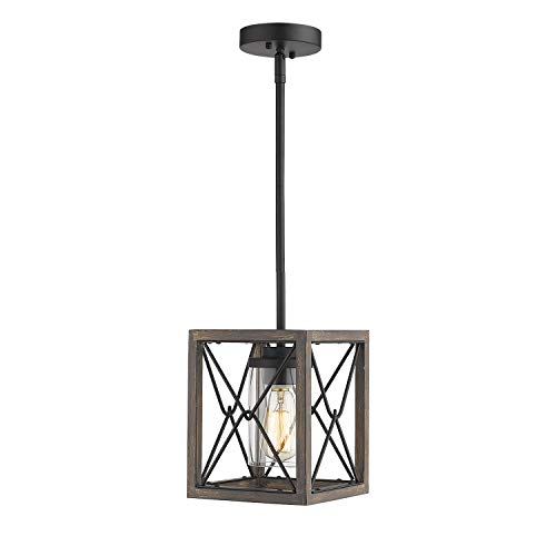 reddit Zeyu 1-Light Farmhouse Pendant Light, Vintage Cage Hanging Light with Clear Glass Shade in Wood and Black Finish, 011-1 WF/BK